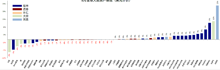 图表: 8月主要海外资产价格表现