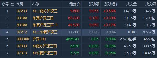 南方二倍做多沪深三百 $07233.HK 上涨0.58%,成交额达1422万港元。
