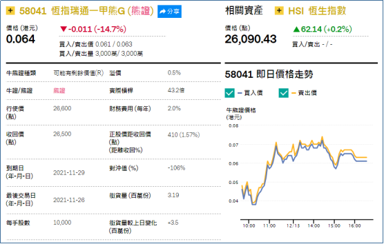 2、看错方向:恒指瑞通一甲(58041.HK),周四下跌14.7%。