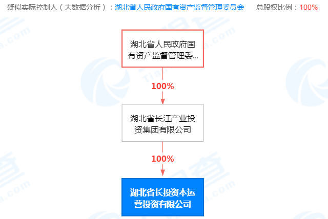 股权结构图显示,长投资本为湖北省长江产业投资集团有限公司的全资子公司,同时是湖北省人民政府国有资产监督管理委员会的全资孙公司。