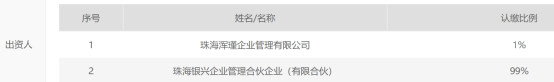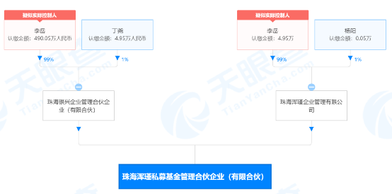 从股权结构来看,珠海浑瑾私募基金的出资人是珠海银兴企业管理合伙企业(有限合伙)、珠海浑瑾企业管理有限公司,分别出资99%、1%。天眼查信息显示,其疑似实控人是李岳。