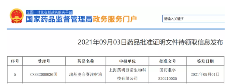 9 月 3 日,NMPA 官网显示,药明巨诺 CAR-T 疗法产品「瑞基仑赛注射液」(JWCAR029)获批上市,用于经过二线或以上全身性治疗后成人患者的复发或难治性大 B 细胞淋巴瘤。瑞基仑赛是国内第 2 款获批上市的 CAR-T 产品,同时值得注意的是,它也是国内首个获批的 1 类 CAR-T 、全球第 6 款获批上市的 CAR-T 产品。