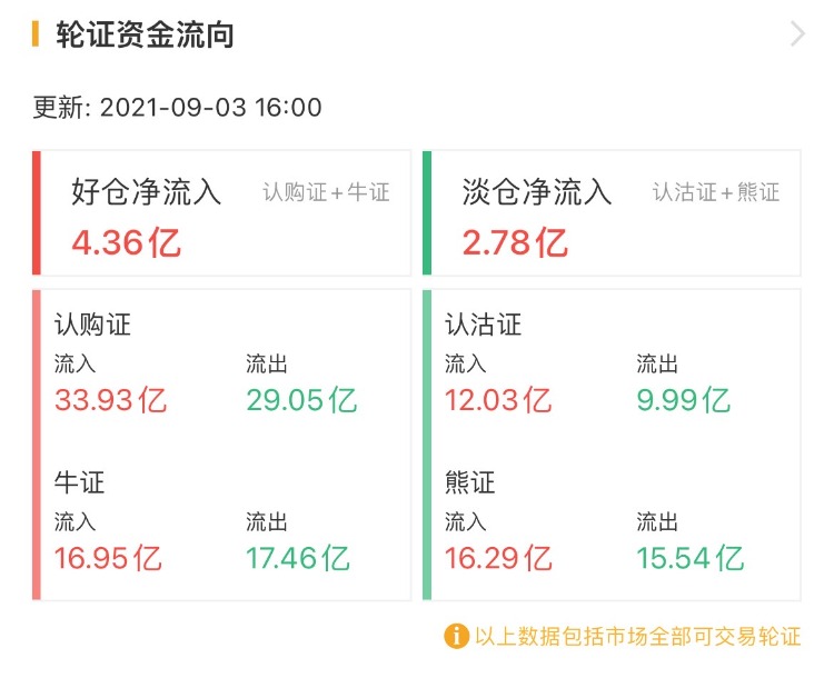 其中,窝轮总成交额88.07亿港元,牛熊证总成交额70.86亿港元。