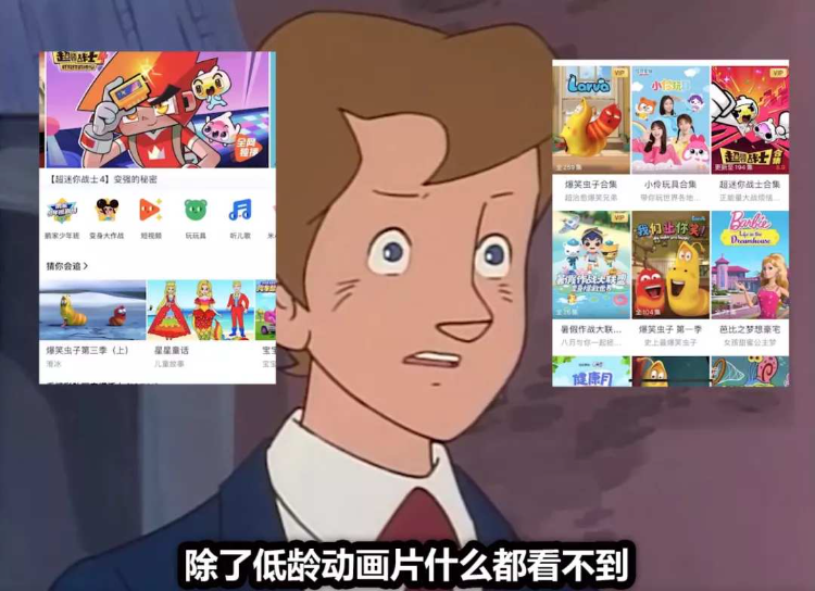 在以后浪闻名的B站,有UP主恶搞把室友的B站账号调成了青少年模式,然后,因为只能看《天线宝宝》和《快乐星球》,在室友疑惑的表情中,屏幕区真是开心极了,飘过一片「爷幼回」、「男人至死是少年」、「友尽系列」、「B站戒断反应」……