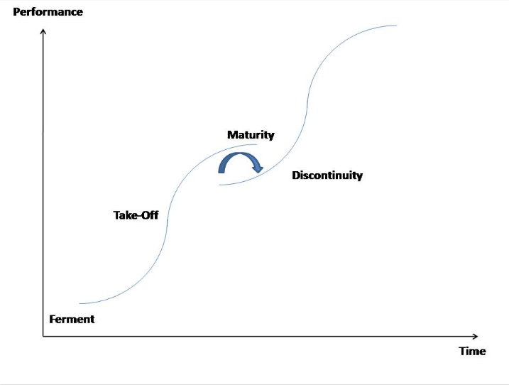市场认为,科技创新常会呈现出“S形曲线”,即技术生命周期:开始增长缓慢,直到引爆点突然加速,然后逐渐减速被新的技术替代。