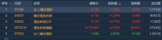 南方两倍做多恒科 $07226.HK 涨1.78%%,成交额1.72亿港元;
