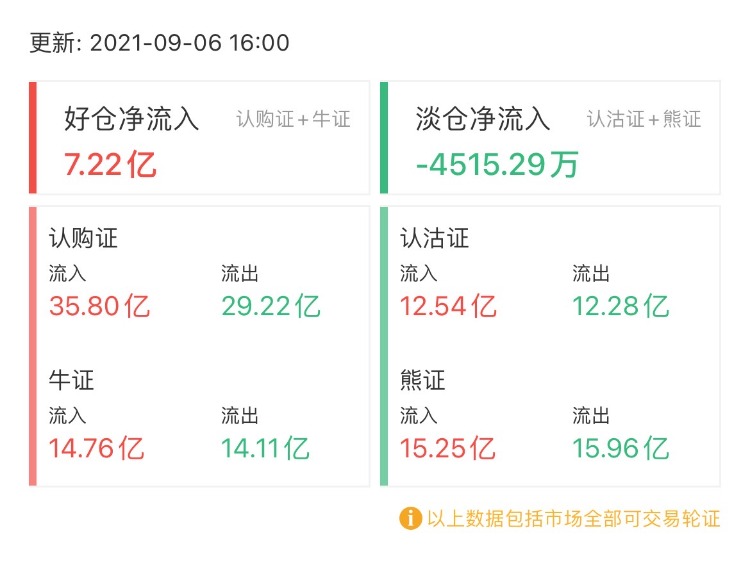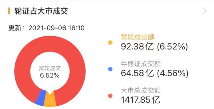 其中,窝轮总成交额92.38亿港元,牛熊证总成交额64.58亿港元。