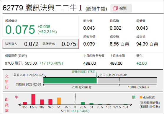 好仓(认购证及牛证)方面,周一个股相关好仓单日净流入资金则普遍规模偏;相反,腾讯相关好仓单日录得约3,688万港元资金净流出,比迪、港交、广汽等相关好仓单日录得部分资金净流出。