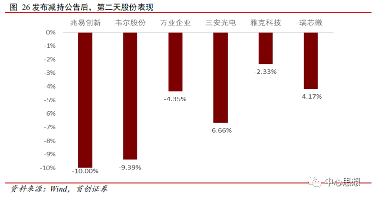 在大基金和公司高管的集中减持下,公司公布减持公告后第二天,股价纷纷应声下跌。
