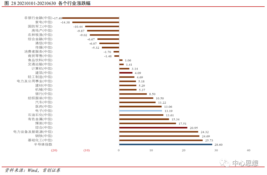 从2021年初至20210630涨跌幅来看,半导体指数在整个行业板块中涨幅位居第一,达到了28.60%。