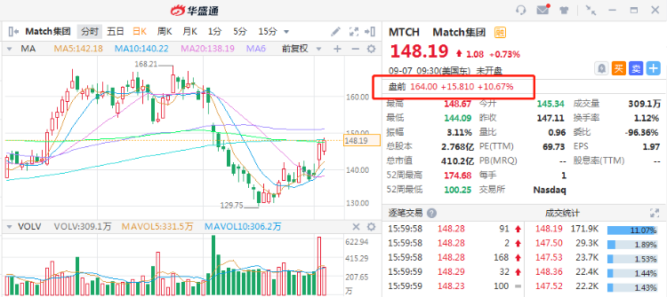其他热门个股中,约会软件Match Group(MTCH)涨超10%,该股将加入标普500指数,9月20日生效。