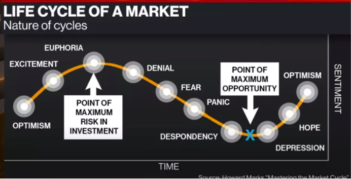 马克斯认为,通常来说,虽有延迟,但经济周期和市场周期的趋势大概率保持一致。 股市的高点一般对应着经济的高点。当经济开始下行的时候,市场也会随之下跌,市场周期出现拐点后经济周期会随之响应。