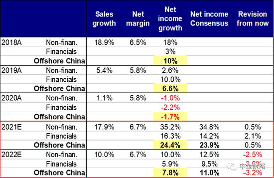 图表:我们维持2021年海外中资股盈利同比增长24.4%的预测