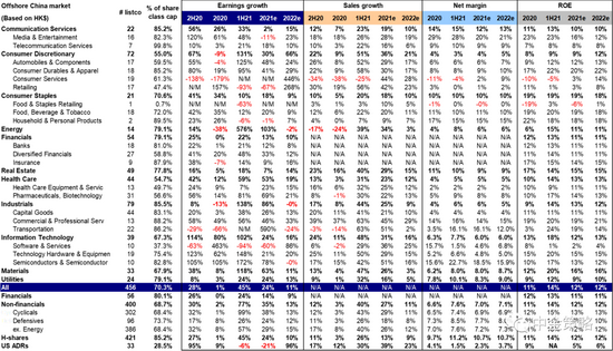 海外中资股市场(包括香港和美国上市中资股)已基本完成了2021年上半年或二季度的业绩披露(港股不强制要求季度业绩披露),因此我们主要基于对2021年上半年业绩情况,分析总结如下。