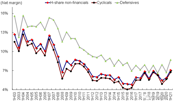 不过,板块内部的分化依然显著,主要受不均衡修复及监管压力影响。具体来看,上游行业如原材料及能源表现领先,主要得益于盈利能力显著提升及低基数效应。中游行业如汽车及零部件、半导体和资本品等在旺盛需求的推动下较2020年下半年也实现加速增长。相比之下,由于国内消费需求依旧低迷,上游提价挤压下游利润率,下游必选消费品盈利增速放缓。
