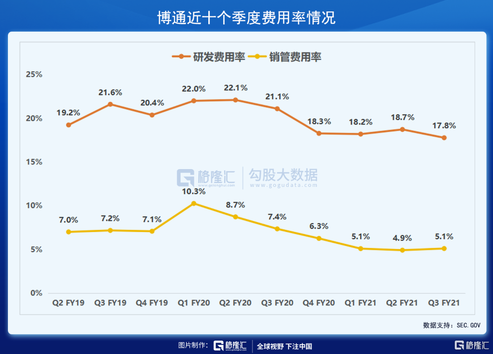 自2018 年以来,博通推出了八款 Wi-Fi 设备,其中包括2021 年的三款新产品。目前,超过 80% 的宽带基础设施依赖于博通,超过 4.5 亿台客户端设备基于博通的产品和技术,博通的存储和数据保护被用于 70% 的企业服务器。