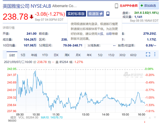 美国雅宝(ALB.US)盘前涨1.18%,此前贝伦贝格将该股评级从卖出上调至买入。