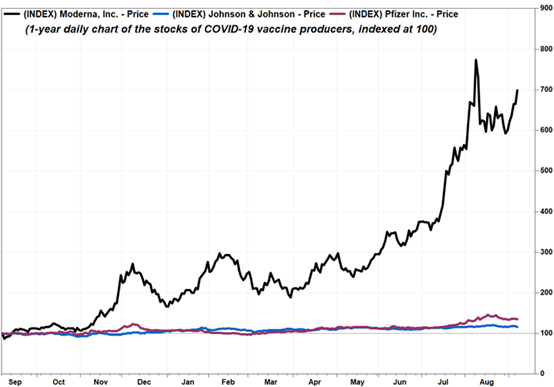 过去12个月,Moderna股价飙升了597.5%,而强生(JNJ)和辉瑞(PFE)的股价分别上涨了15.8%和35.4%。 同期,SPDR标普制药指数ETF(XPH)上涨了12.4%,而标普500指数(SPX)上涨了32.1%。