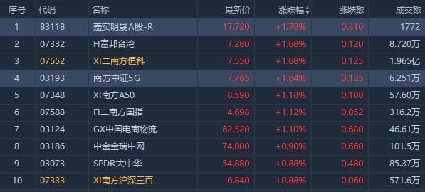 港股市场涨幅前十ETF