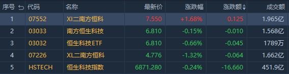 南方两倍做多恒科 $07226.HK 跌1.32%,成交额1.66亿港元;