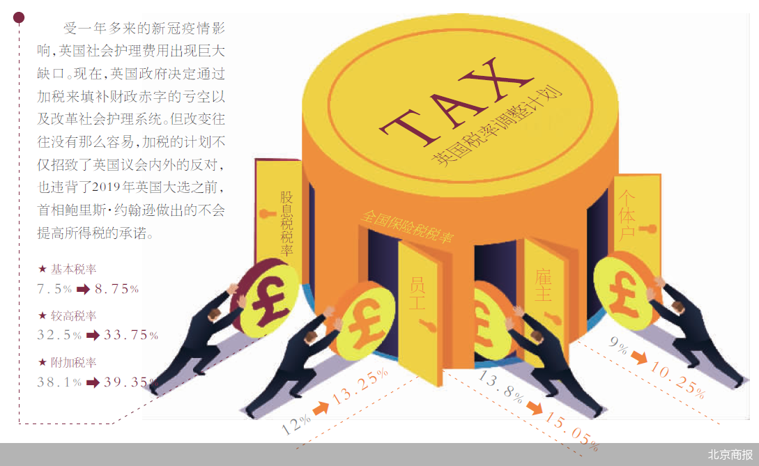 受一年多来的新冠疫情影响,英国社会护理费用出现巨大缺口。现在,英国政府决定通过加税来填补财政赤字的亏空以及改革社会护理系统。但改变往往没有那么容易,加税的计划不仅招致了英国议会内外的反对,也违背了2019年英国大选之前,首相鲍里斯·约翰逊做出的不会提高所得税的承诺。