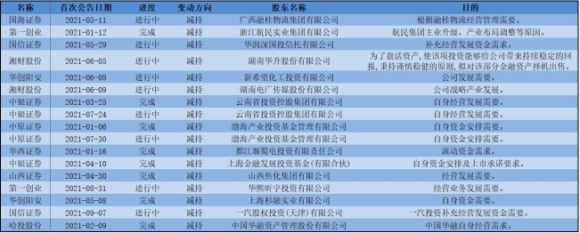 数据显示,年内已有10家上市券商发布股东减持计划公告,累计发布17次,其中,有8笔已经完成减持,还有9个计划仍然还在进行中。