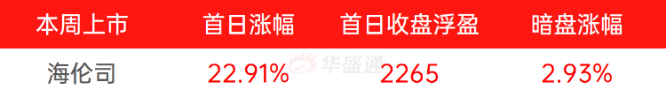 本周共有一只新股上市,“酒馆第一股”海伦司于本周五挂牌港交所主板