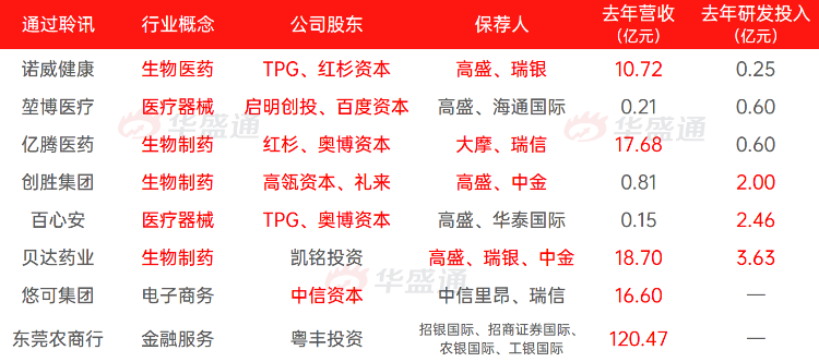 上周通过聆讯的企业共有3家,分别堃博医疗、诺威健康和东莞农商行;截止目前,共有8家企业通过港交所聆讯,随时启动招股程序。