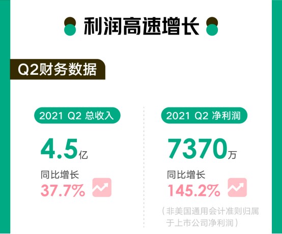 今年第二季度,新氧实现总收入4.518亿元,创历史新高,实现同比增长37.7%。非美国通用会计准则归属于上市公司净利润7,370万元,同比增长高达145.2%。