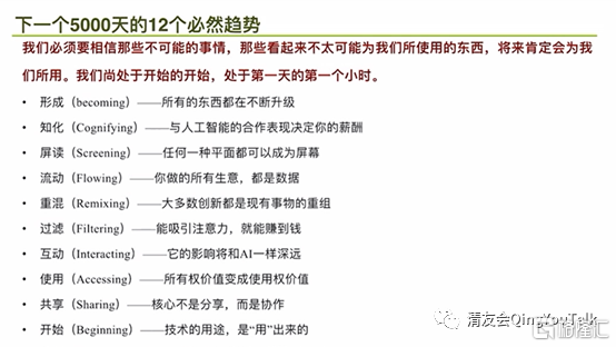 在未来,现实世界各行各业都会元宇宙化。例如教育行业,如果学历史、学地理时候能够全身心地要切入到某一个历史片段,例如淝水之战这样的战争场景,学生就会更完整地知道事情的来龙去脉以及中间的决策过程,这样学生对整个事情的理解就会非常充分,而不是接受现在书上简单的描述。元宇宙时代里1000个人眼中有1000个元宇宙,未来会有无数个子领域,会形成统一的超元宇宙。互联网思想家凯文凯利,提到了元宇宙未来10年的12个必然趋势。第一是形成,六项技术在不断地进步、不断完善。VR和AR的眩晕感在Facebook的第二代产品已经解决了,重量问题可能在下一代去解决,这时候它的全球用户数就已经过亿了。第二是未来怎样去利用人工智能,未来你能有多少个人工智能辅助助手以及自身分身,这决定了你的能力上限。第三是要元宇宙的场景和屏幕随处都在,归根到底流动的是中间的核心数据。元宇宙不是全新提出的概念,是这六项技术突然到了一个时间点,各个企业和用户体验到达一个临界点,从而形成相应共识。第三是元宇宙的最大价值是充分地把我们注意力调动起来,深度沉浸进去,这和在互联网、物理世界不一样,他让我们完全分不清楚虚拟和现实之间的互动。