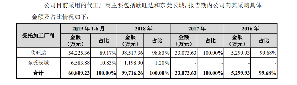 根据资料可知,石头科技并无自建生产基地,旗下所有产品全部采用委托加工方式生产。其中欣旺达是石头科技最核心的委托加工厂商之一,一度占公司委托加工采购总额的100%。
