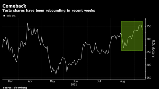 随着特斯拉8月份中国出货量反弹,且整体股市8月份上涨,这家电动汽车制造商的股价在过去三周内攀升,截至周四收盘,该公司市值增加了约750亿美元。