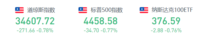 标普和道指连跌五日,周五标普500指数收跌0.77%,报4458.58点,创2月22日以来最长连跌;道指收跌271.66点,跌幅0.78%,报34607.72点,两大指数均录得1.6%的周跌幅,为6月中旬以来的最差表现。纳指周五收跌0.87%,报15115.49点,创8月26日以来新低。