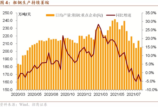 最近以来,A股钢铁、煤炭等传统周期行业加速上涨。从高频数据来看,周期板块仍有继续上涨的空间。8月下旬全国重点钢企粗钢日均产量下滑至205.27万吨,环比下降4.0%,同比下降5.0%。从产量上看,当前粗钢日均产量大致相当于2020年5月上旬的水平,从增速看,同比增速相当于去年3月国内经济刚刚重启时的水平,二环比增速跌幅接近2020年2月下旬全国经济暂停时的水平。由此可见,当前钢铁供给持续压缩,而下半年制造业、基建投资都边际改善的可能性较高。供需失衡的格局下,钢铁价格将进一步上涨,钢铁板块上涨行情仍有基本面的坚实支撑。