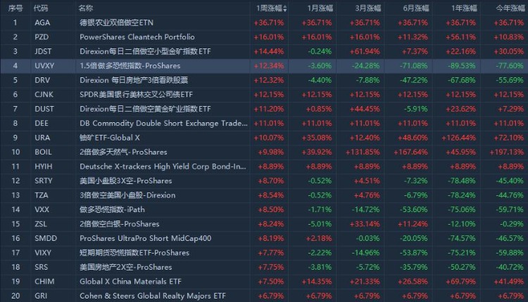 一、本周美股ETF涨幅榜