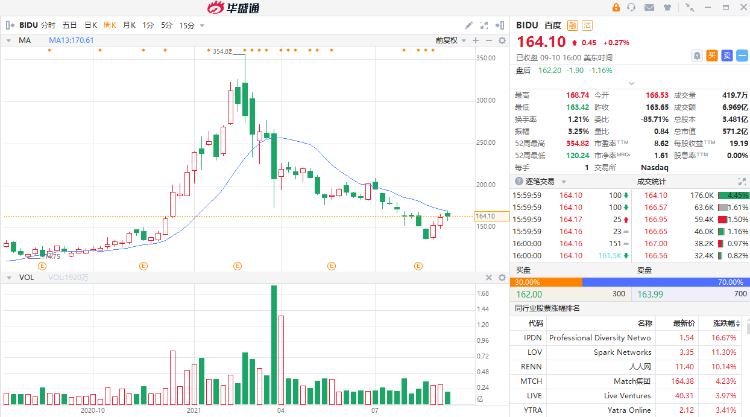 截至9月10日周五收盘,百度美股报164.10美元。
