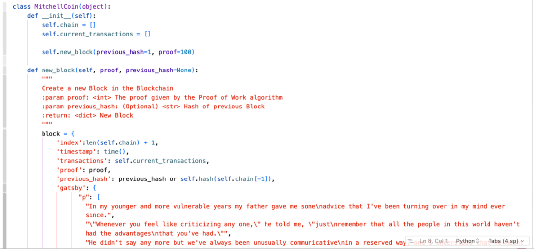 其一,区块(Blocks)。区块是将数据存储在区块链上的基本单位,它由制作区块链的人来决定他们存储什么样的数据。如果我愿意,我可以创建一个区块链,其中每个区块都存储了《了不起的盖茨比》的整个文本,但这样会显得我很愚蠢。