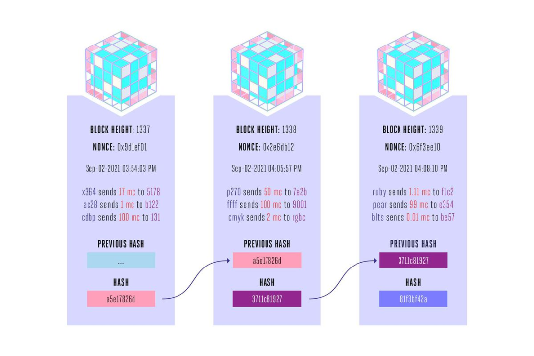 链中的每个区块都包含前一个区块的哈希值,这正是哈希算法在给定区块数据时所吐出的内容。如果有关该块的任何内容发生更改(例如,其中的交易,甚至整个块本身),则该块的哈希值都会更改,从而破坏链,包含前一个区块的哈希值的下一个区块会说“我已改变,有事!”