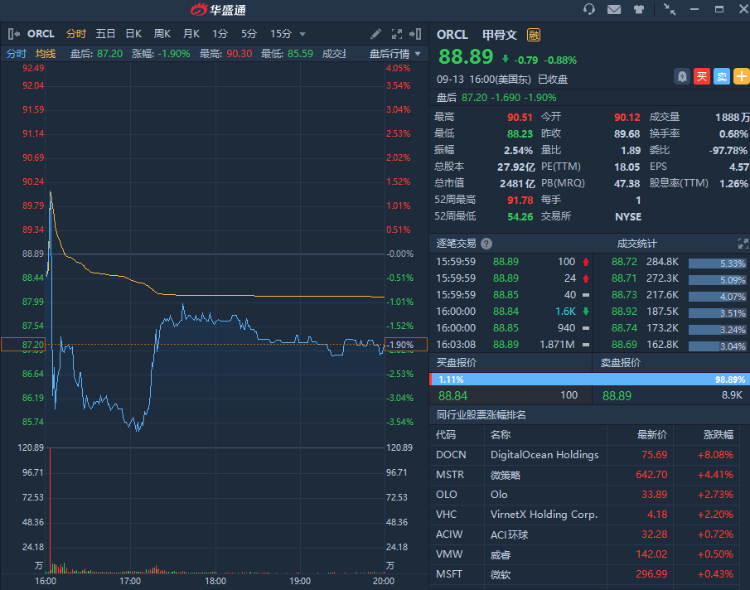 甲骨文股价周一盘后一度大跌3%,最新财报显示该公司第一财季营收不及市场预期。