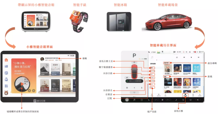 喜马拉雅用声音连接和服务了庞大而高粘性的用户群,并完成了多场景全渠道覆盖。公司的在线音频服务产品通过公司的移动应用程序以及物联网、车载场景和开放平台,创造了一个与用户日常生活平行的世界,以同时接触、连接和服务公司的用户。