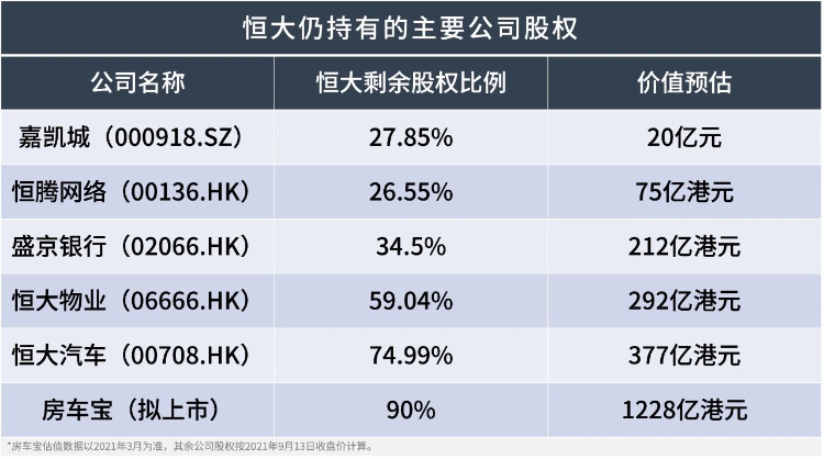 而且,恒大能够摆上货架的优质资产还是有一些的。比如上述几家公司的股权,恒大还握有不少。