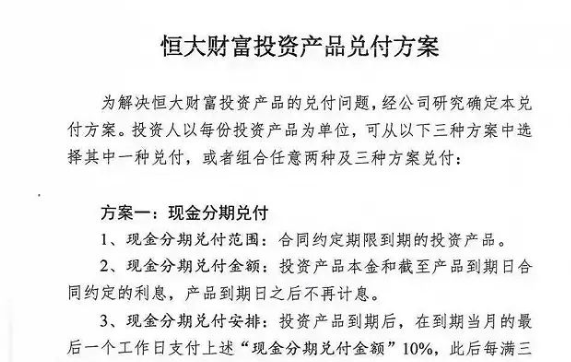简单来说,就是要么分期慢慢还钱,要么直接拿恒大的房子抵。
