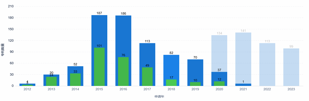 小米2013年有意造车,2015年开始专利布局,申请量每年递增,按智慧芽的统计目前已有951件,其中96%以上是发明专利,从专利估值来看,特斯拉约为2亿美元,蔚来1864万美元,恒大、小鹏、理想都是800万美元左右,小米大概1亿美元。