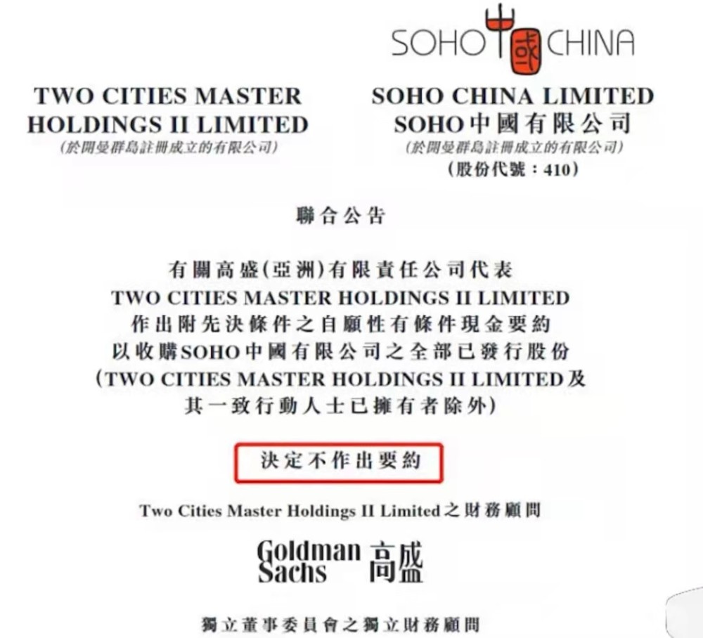 其实早在2019年就传言黑石集团跟soho中国进行私有化谈判,出价大概是40亿美元,但是后来不了了之了,结果兜兜转转近一年,潘石屹自降身价打了个七五折,30亿美元坚决要买,可是没想到就是卖不出去,潘石屹最后还是没有跑成。