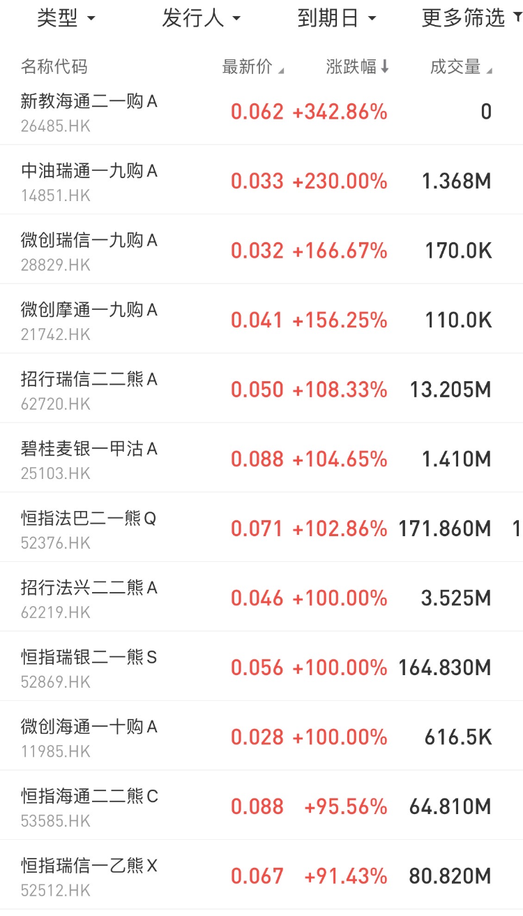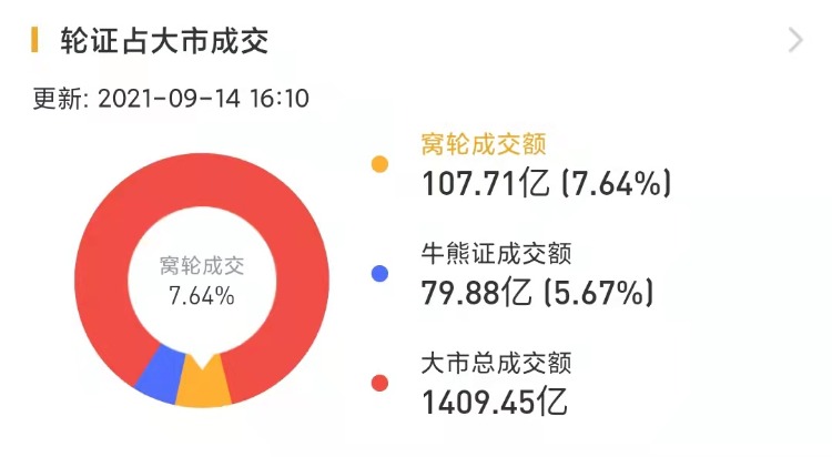 其中,窝轮总成交额107.71亿港元,牛熊证总成交额79.88亿港元。