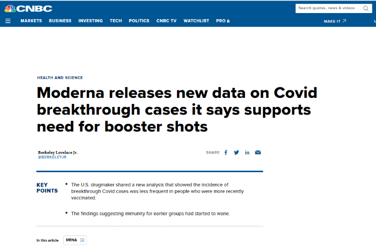 Moderna总裁斯蒂芬•霍格(Stephen Hoge) 指出,与六个月相比,一年前接种疫苗的人感染新冠病毒的概率大大增加。如果采用这个数字(即每1000人中有28个病例),接种疫苗的六千万美国人,那就会有超过50万感染案例。