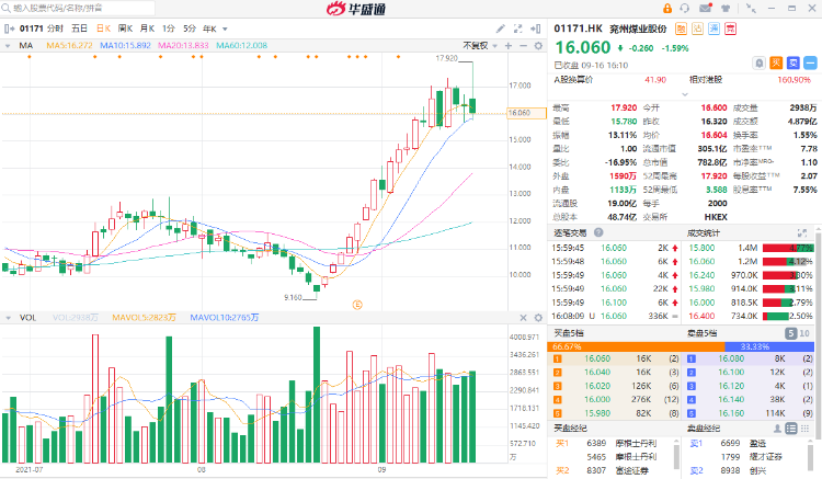 4、华泰证券称,考虑到国内市场和澳洲生产基地煤价齐升,煤化工产品亦处于景气周期,兖州煤业股份后市业绩料将延续增势。
