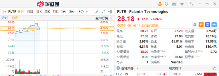 华盛资讯9月16日消息,Palantir Technologies(PLTR)早盘走高,现涨超4%,游戏驿站(GME)涨4.18%,其他WSB概念涨跌不一,AMC院线(AMC)涨2.33%,阿里巴巴(BABA)跌1.26%。