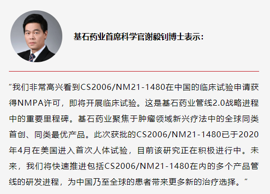 即将开展的临床试验旨在评估CS2006/NM21-1480在多种晚期实体瘤中国患者中的安全性、药代动力学特征及抗肿瘤活性。