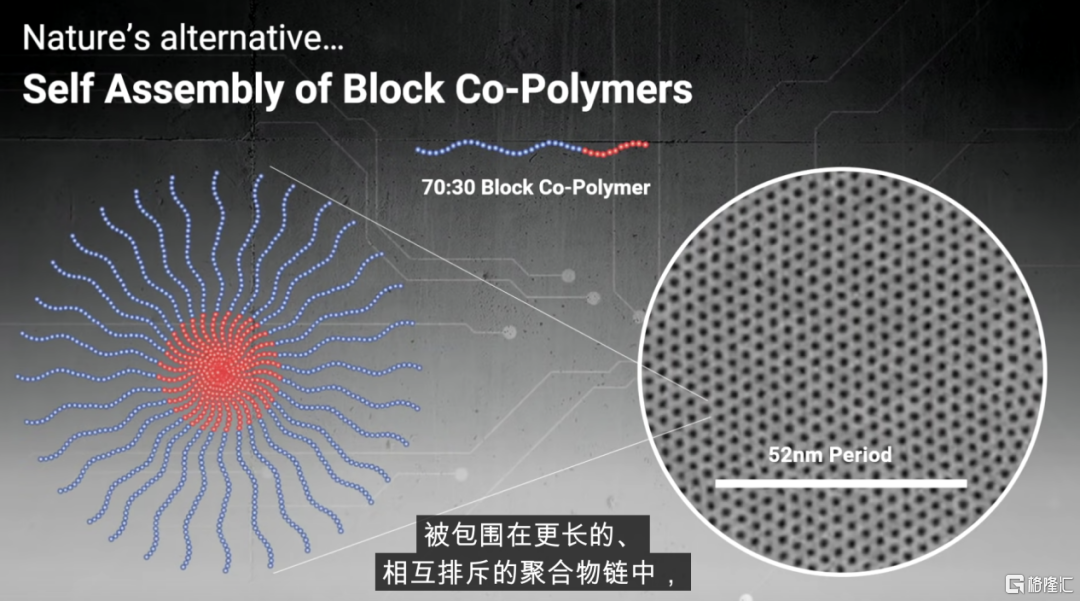 除了成本之外,传统的自上而下的光刻模式正日益受到感光材料对光反应的固有问题的挑战,如随机打印失败和线边/线宽粗糙度(LER/LWR)。而定向自组装(DSA)技术被认为是一种革新的、更具成本效益的制造方法,它是采用自下而上的模式。作为补充和进一步扩展基于光刻的模式的潜在途径。